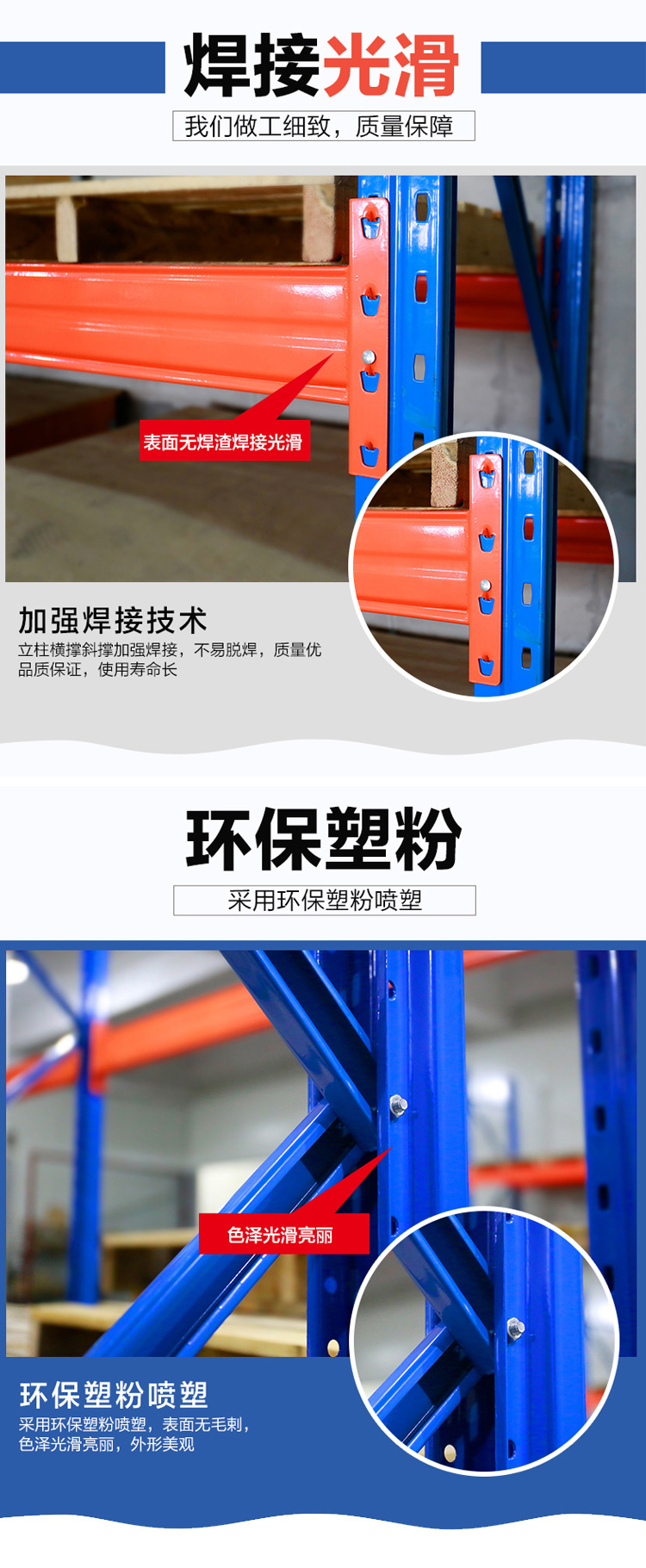 一般用托盤代替層板方便叉車搬運(yùn).載重量1噸-5噸,表面靜電噴塑 ,防水防銹防腐蝕能力更強(qiáng),安全系數(shù)高,插接式組合,不用螺絲和焊接,組裝非常方便.尺寸可以隨訂隨做!充分利用空間面積,提高倉儲(chǔ)能力,可按客戶要求設(shè)計(jì)制作。